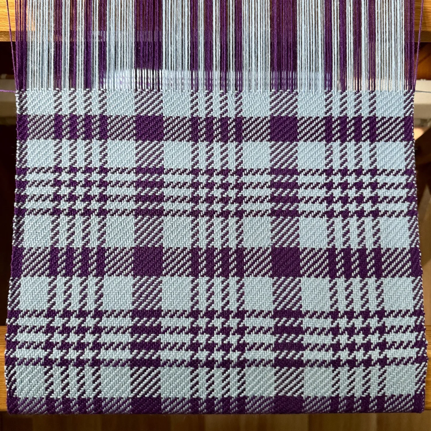 This is one of his patterns that he wove for Betsy and Louisa in the 19th century. I decided to change up a rather plain plaid into something with a bit more interest by adding a twill structure to it. I’m enjoying the rhythmic large blocks interrupted by smaller alternating lines. I’m guessing Weaver Kiddinger would’ve charged 25 cent per yard for a dobbelstein zwillich ‘plaid twill.’