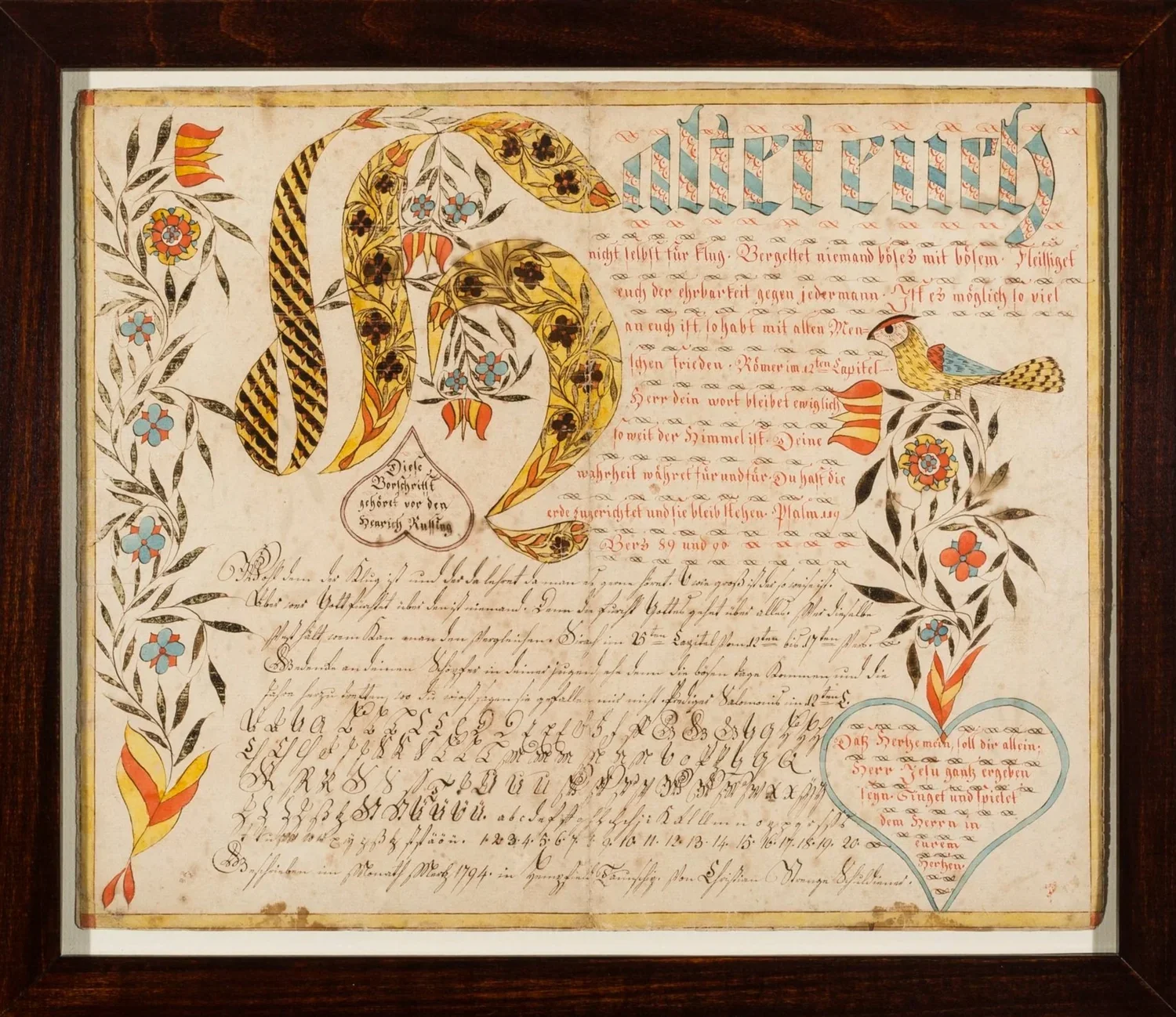 Standing there on the former parade grounds, I wondered if Friedrich and Christian were at the same spot years ago being recruited before heading to America. They arrived to fight Americans, but stayed to make these beautiful works on paper and to teach our ancestors. Indeed, they became “one of us” Pennsylvania Dutch.